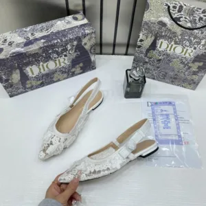 Christian Dior J’Adior Slingback Transparent Mesh White Dior Embroidery Flat with OG Box, Dust Bag & Carry Bag For Women