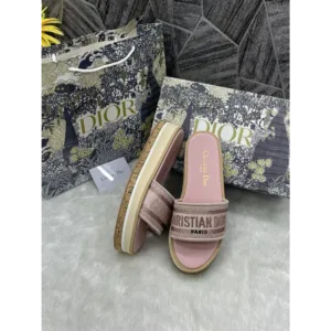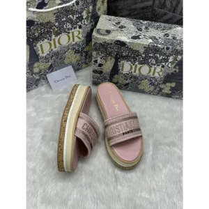 Dior Riviera Dior Dway Platform Raffia Slides with Original Box and Carry Bag For Women