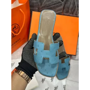Hermès Oran Blue Slides with Original Box, Dust Cover, Carry Bag & Tags High-End For Women