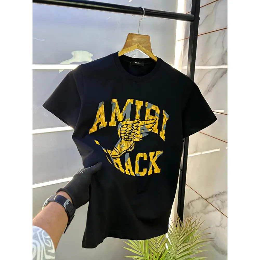 Premium Amiri T-Shirt Black Round Neck For Men