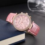 Festive and feminine, a glitz topring embellishes the stainless steel case, takes this watch to a new level of chic.