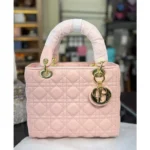 Stylish Christian Dior Leather Handbag Matte Pink With Og Box & Dust Bag For Women
